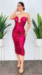 VESTIDO STRAPLES CON PIEDRERIA Y CORSET