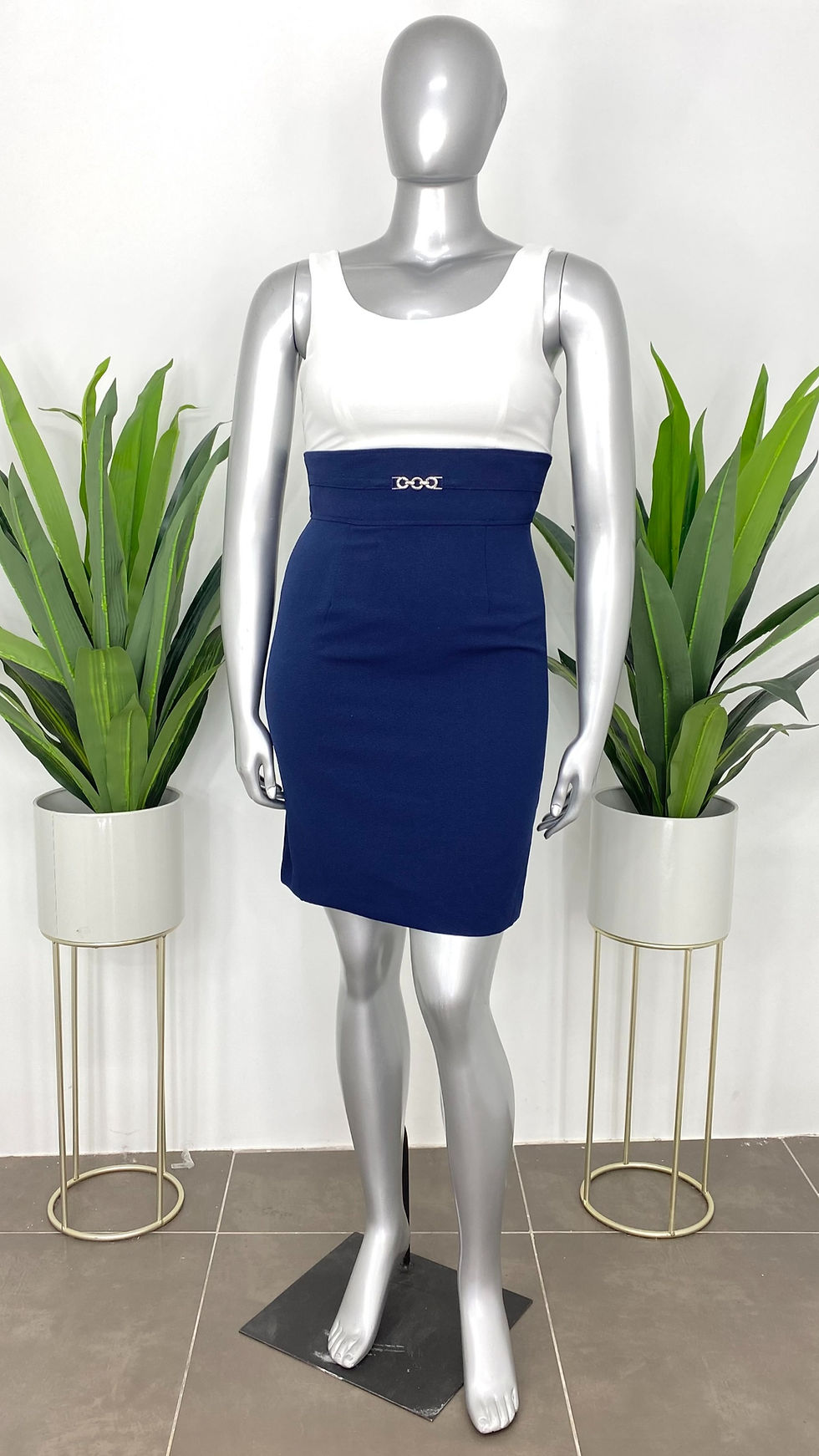 VESTIDO CORTO AZUL Y BLANCO CON CHALECO STUDIO ONE