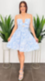 VESTIDO CORTO AZUL Y BLANCO CON CHALECO STUDIO ONE